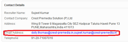 Crawler to each job post of naukri.com and extraction of Email Address: field from each jobpost
